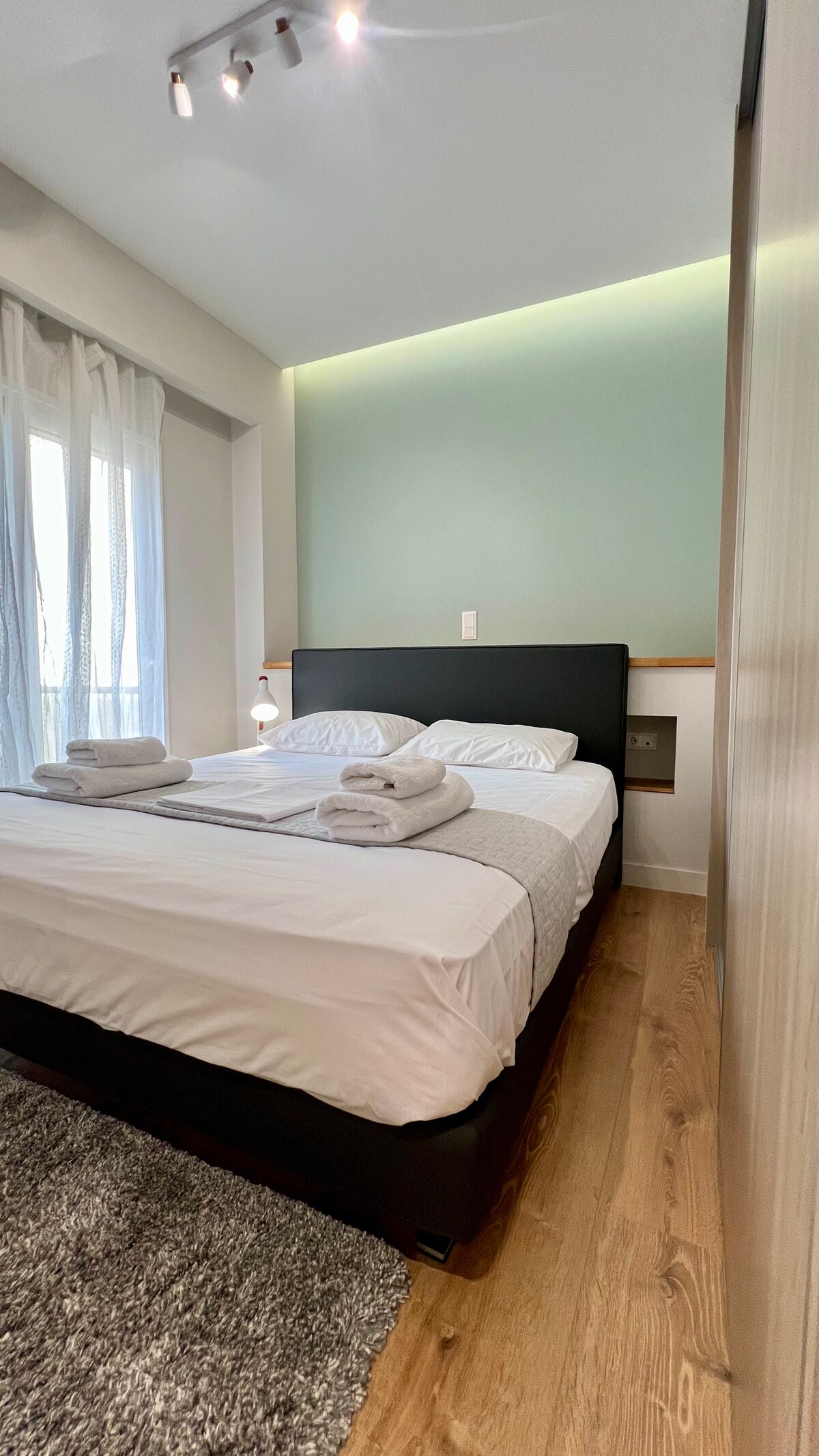 This newly renovated and modern apartment features three spacious bedrooms, each equipped with a comfortable double bed, accommodating up to six guests.