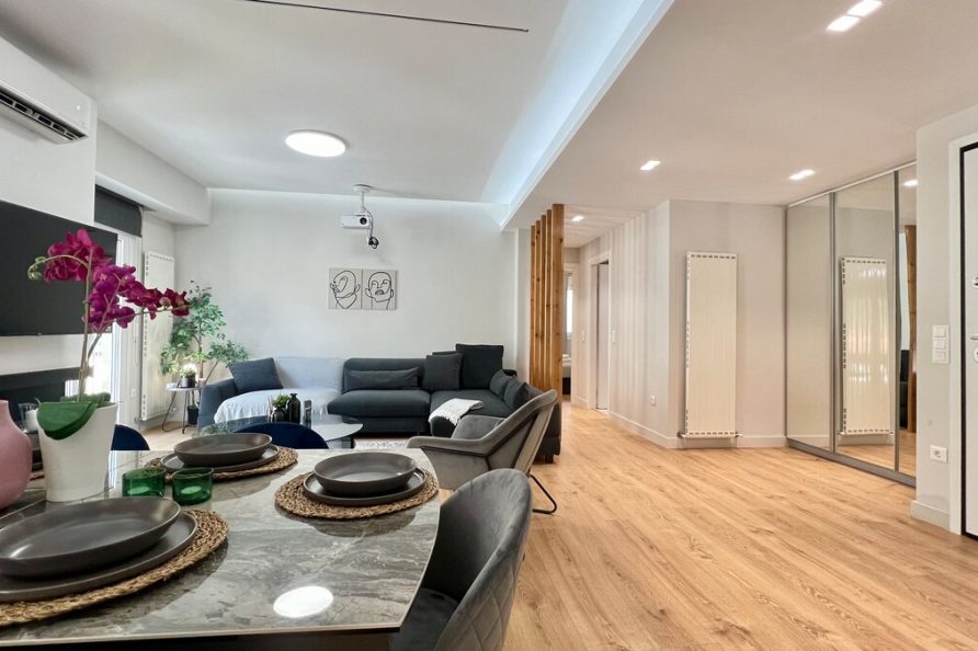 Our spacious and modern apartment, with three bedrooms and two full bathrooms, offers a comfortable and relaxed stay. Located just a 8-minute walk from Petralona metro station it’s the perfect base for exploring Athens’ attractions and downtown Athens while living in an authentic Athenian neighborhood. It can comfortably accommodate up to 6 guests. It’s ideal for families and group of friends who want to see Athens as a local