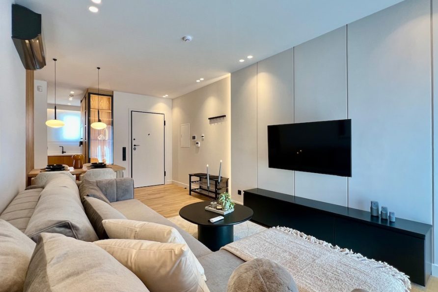 Welcome to this stylish two-bedroom apartment with a private balcony on the first floor, perfect for a comfortable and relaxing stay. Designed with modern aesthetics and thoughtful details, the space features a cozy double bed, a comfortable sofa, and an inviting ambiance that makes you feel right at home. The fully equipped kitchen includes all the essentials for cooking, while there are two sleek bathrooms that offer a refreshing retreat. Step out onto the balcony to enjoy your morning coffee or unwind in the evening with city views. Whether you’re visiting for business or leisure, this apartment is the ideal blend of comfort, style, and convenience.